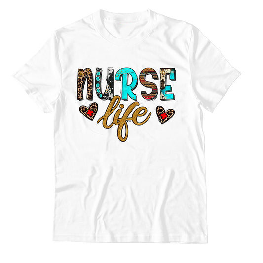 Leopard Cheetah Floral Print Nurse Life Tees. 100% Cotton Graphic Women's T Shirts.